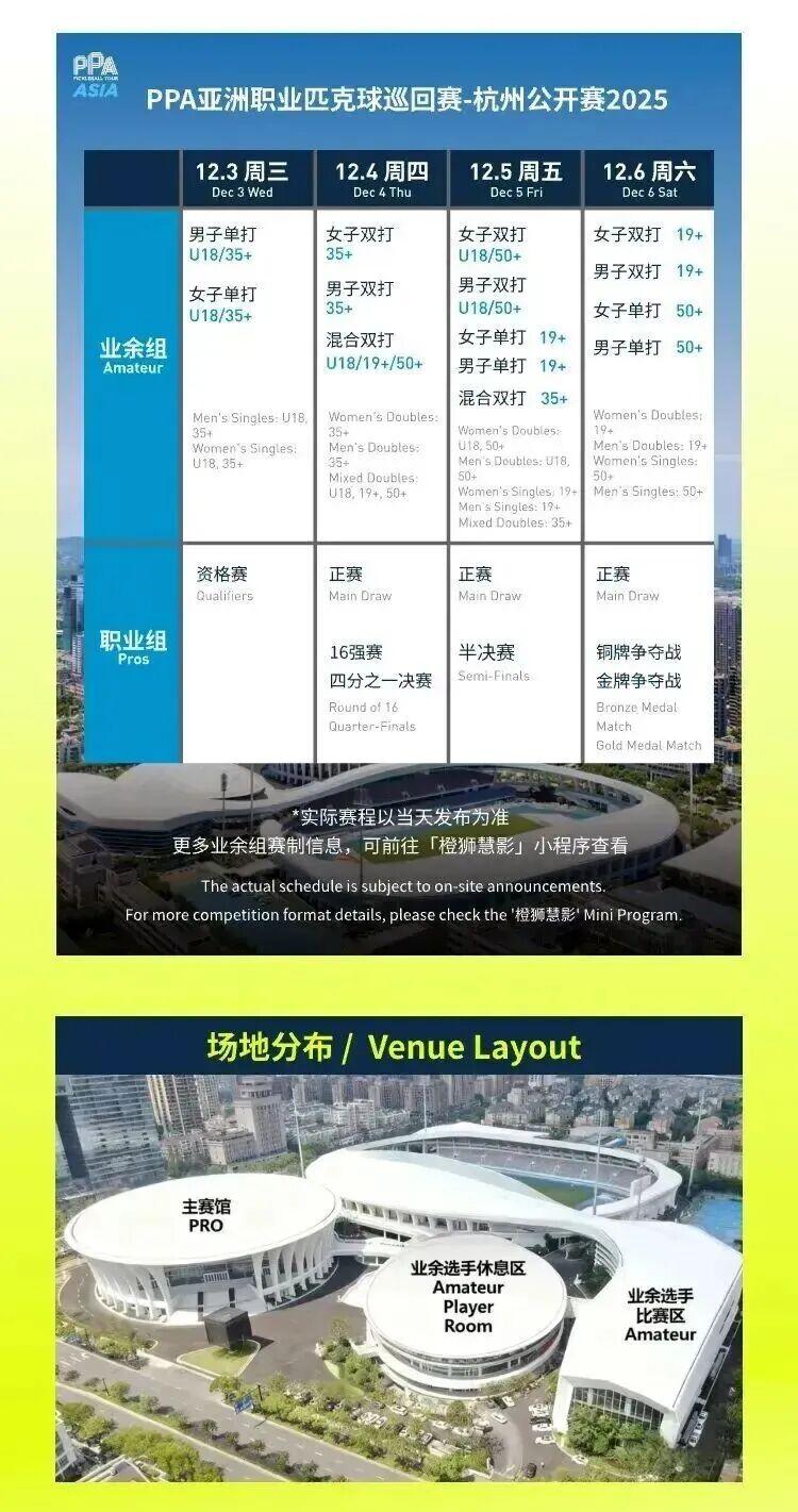 今天(12月3日)起,PPA亚洲职业匹克球巡回赛杭州公开赛将在临平体育中心拉开帷幕,比赛将持续至12月6日。