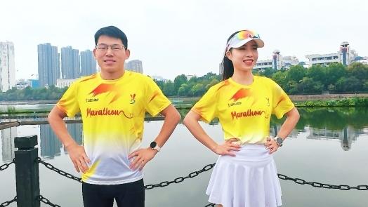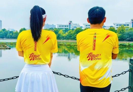 赛事服以黄至橙红的渐变,绘出“阳光洒地”的活力意象,既呼应黄冈春之油菜花、夏之炽热阳光,也融入了大别山朝霞的绚烂与革命热土的红色基因。服饰纹理以粗犷笔触模拟奔跑轨迹与山势起伏,将运动速度感与地域自然肌理融为一体。醒目的手写口号“奔跑吧!黄冈”如呐喊般迸发激情,传递着参与、奋进的赛事精神。服装设计以色彩述说地域,以线条勾勒精神,向大众展现一个充满活力的黄冈形象。