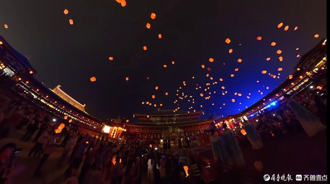 10月1日,国庆中秋长假第一天,山东乐陵影视城迎来众多游客,景区内全天候举办古风舞蹈、片场秀、烟火秀、无人机秀、魔术秀等丰富活动,为到场游客提供沉浸式观赏游玩体验。