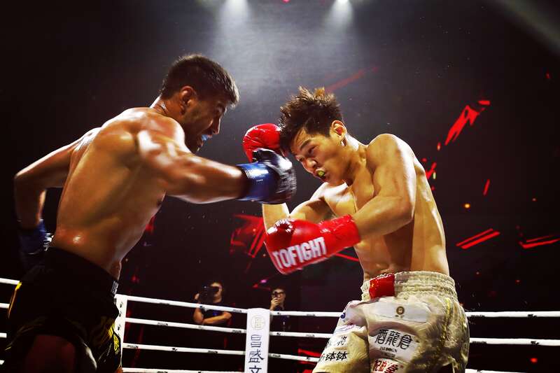 “武林风554・武耀津湾”高端数字赛,WLFMAX63KG世界金腰带卫冕战:乔治(格鲁吉亚)VS金鹰(中国)。河南卫视供图