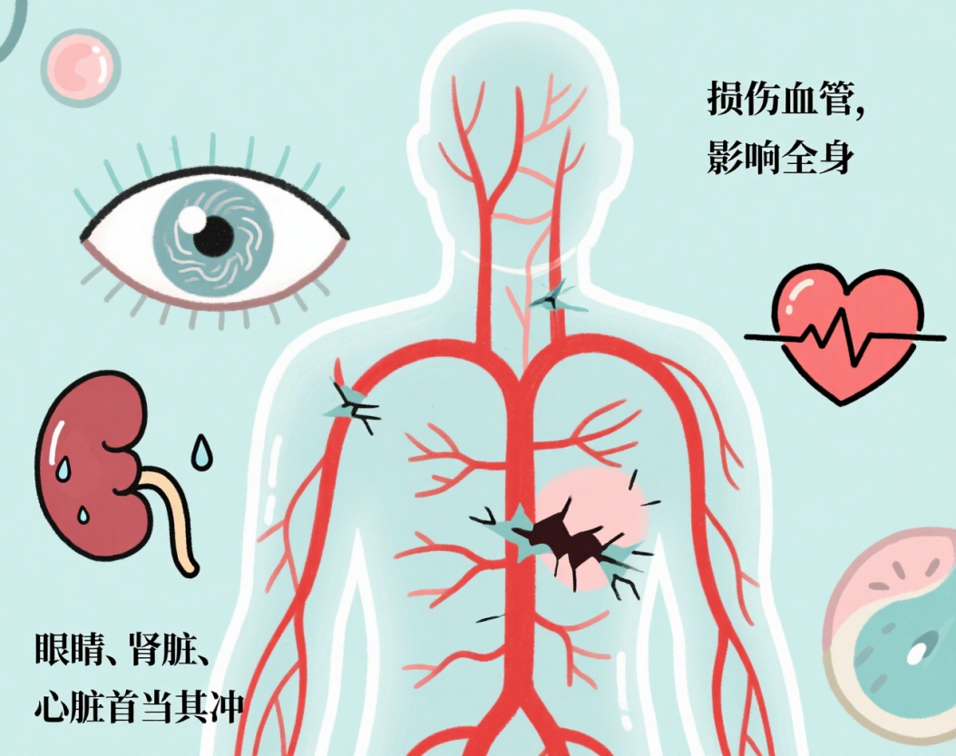 这种体内糖代谢异常状态就像是给身体的各个角落都洒上了一层糖霜,会损害多个系统器官,连眼睛也不放过。
