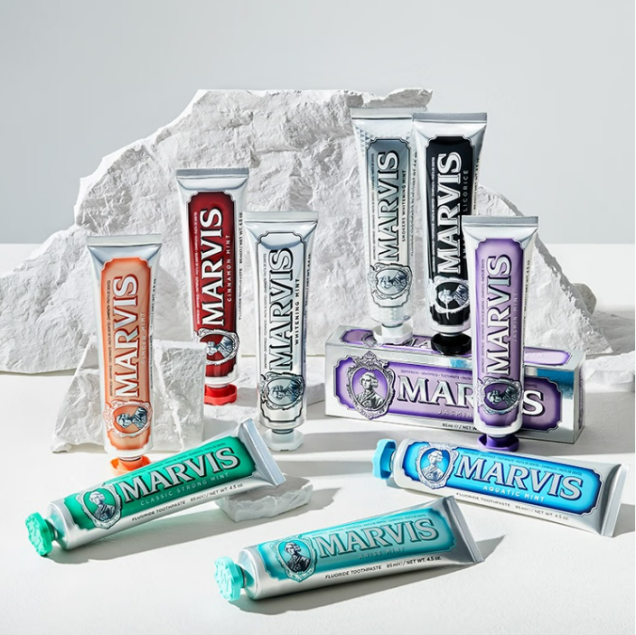 Marvis牙膏采用低泡设计,其传统极细质地的膏体能有效清洁牙齿并保护牙釉质,帮助去除烟渍、茶渍、咖啡渍等外源性色渍,使牙齿恢复自然洁白。使用时口感温和舒爽,带来持久清爽体验。