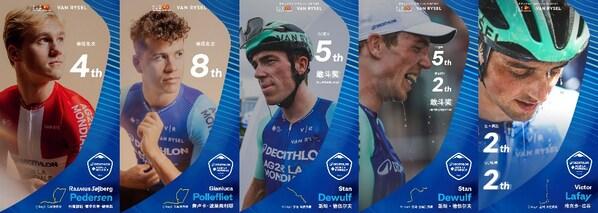在迪卡侬专业装备的技术加持下,迪卡侬AG2R车队本赛季成绩可圈可点,车手突围总里程达12,690公里,领先次席超1,000公里,展现了世界级职业车队的综合实力。车手们在多个赛段中表现亮眼:古典赛车手斯坦・德伍尔夫(Stan DEWULF)在崇左-靖西赛段展现顽强斗志,全程突围领先主集团170公里,荣膺"敢斗奖",随后在巴马—金城江赛段,他再度发力,持续突围162公里,多次斩获爬坡与冲刺积分,蝉联"敢斗奖",最终稳居爬坡积分总榜第三名;冲刺手维克多・拉菲(Victor LAFAY)在号称"皇后赛段"的宜州—弄拉赛段及南宁城市赛段中强势冲出重围,全程领跑追击集团,最终荣获个人总成绩第二名;古典赛车手皮埃尔・戈瑟拉(Pierre GAUTHERAT)以稳定的发挥,最终荣获单赛段排名第六位;古典赛车手拉斯缪斯・索伊贝里・彼得森(Rasmus Søjberg PEDERSEN)与冲刺手詹卢卡・波莱弗利耶(Gianluca POLLEFLIET)亦发挥出色,在首个防城港城市赛段中分别斩获第四名和第八名。值得一提的是,全能型车手南斯・彼得斯(Nans PETERS)将环广西世巡赛作为告别之战,曾深度参与了VAN RYSEL公路车锁鞋开发的他,将竞技热血发挥到最后一刻,在南宁城市赛段一路坚持突围接近100公里,为职业生涯画上了圆满句号。