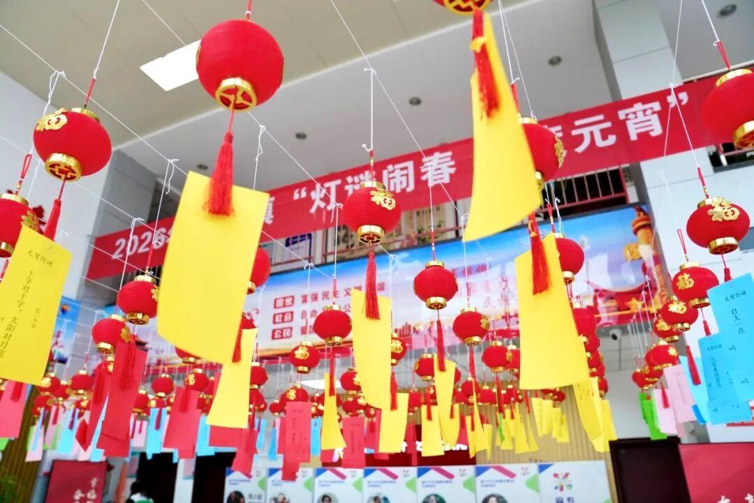喜庆祥和的小红灯笼高高悬挂,每一盏灯笼下都悬挂着精心设计的灯谜。俚语俗语、人名地名、经典字谜……大家或驻足凝思,或接耳讨论,展示着丰富的知识储备,感受着中华优秀传统文化的深厚底蕴,丰厚的灯谜和奖品让参与者满载而归。