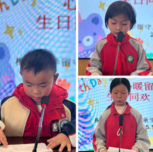 德育处林琳主任首先温情主持开场,她用亲切的话语问候每一位“小寿星”,瞬间拉近了与孩子们的距离。林主任表示,学校就是孩子们温暖的家,希望通过这场特别的生日会,让爱与温暖陪伴他们健康成长。