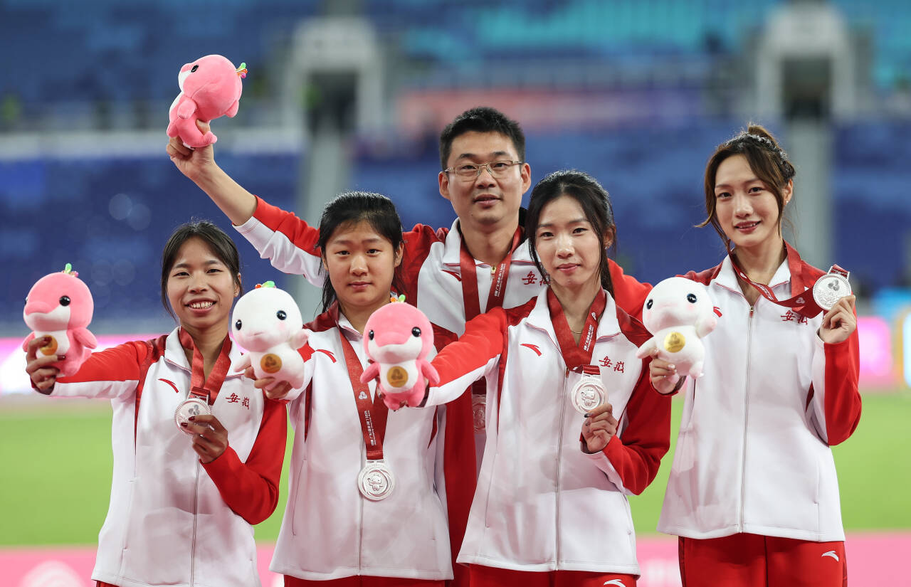 11月20日晚,女子4X400米接力,由李玉婷、汪亚君、麦思炜、周莉组成的安徽女子接力队发挥出色,以3分34秒41的成绩斩获银牌,创造安徽女子4X400米全运会历史最好战绩。