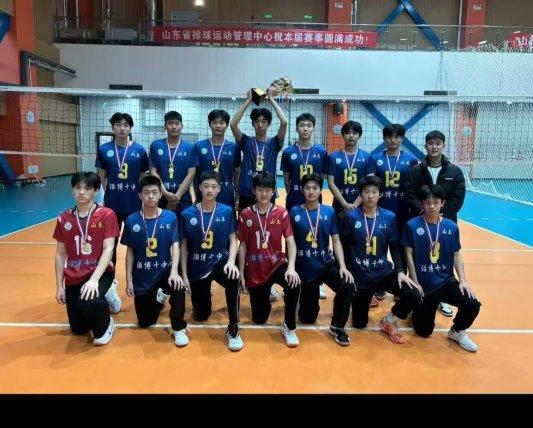 淄博十中男子甲组排球队小组赛分在B组,与菏泽、东营、滨州、威海、聊城分在一组,以三胜两负的战绩获得小组第三名;在交叉赛中,淄博十中男排以3:1的比分战胜潍坊队进入半决赛;在半决赛中,淄博十中男排以3:0的比分战胜菏泽队进入决赛;在决赛中,淄博十中男排以3:1的比分战胜济南队,最终取得了第一名的优异成绩。这也是淄博十中男子甲组排球队获得的2023年、2024年、2025年山东省排球冠军赛赛事的三连冠。