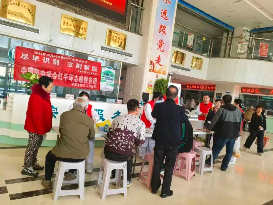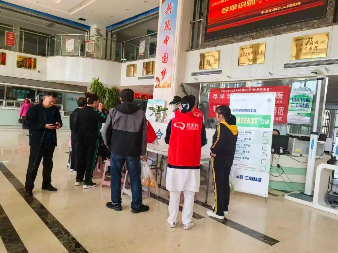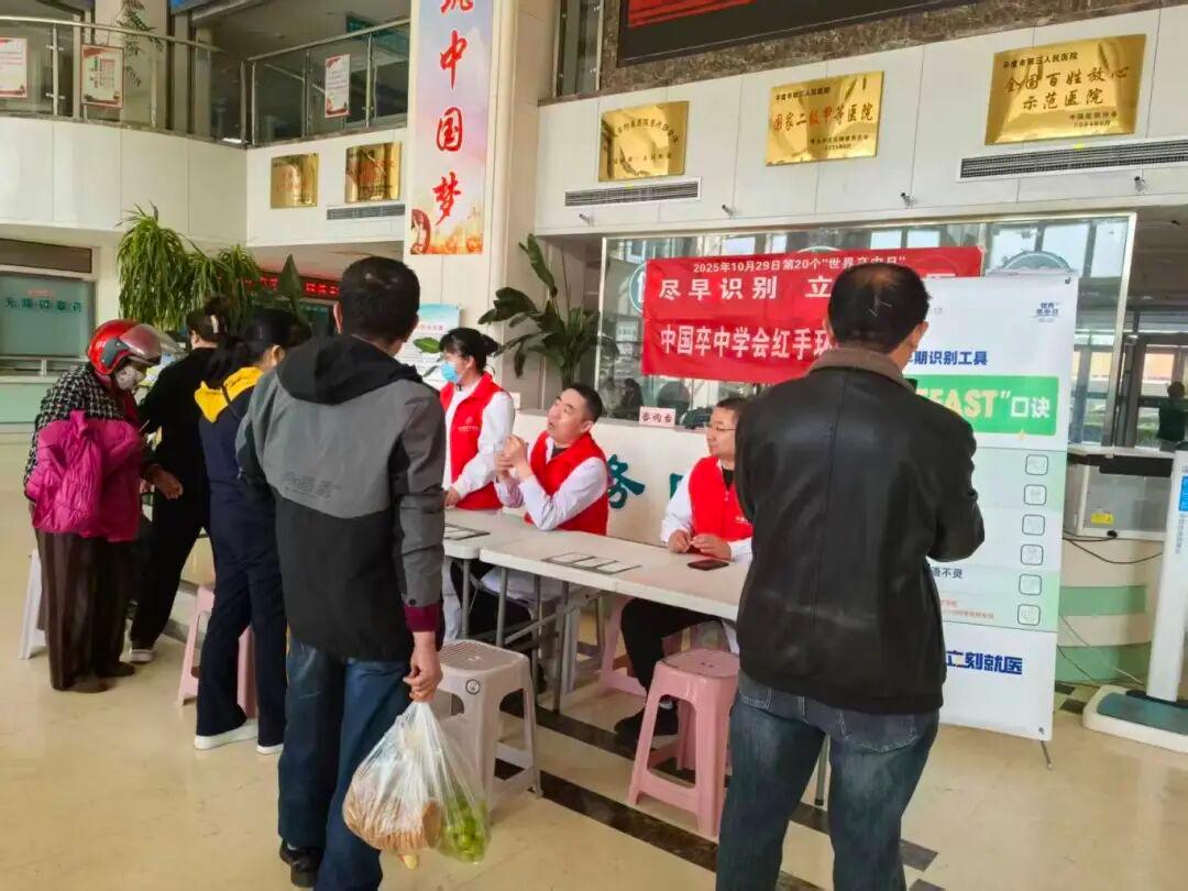 鲁网10月31日讯2025年10月29日是第20个世界卒中日,今年世界卒中日的主题是“尽早识别、立刻就医”,为了动员全社会都来关注卒中、重视卒中预防,平度市第三人民医院红手环志愿团在唐都勇主任的带领下,积极响应党和政府关于重大疾病防治关口前移、早防早治的政策指引,广泛动员、积极组织、深入基层,为提高我国居民健康科学素养水平,降低卒中的发病率、死亡率、残疾率和复发率积极贡献红手环团队力量。