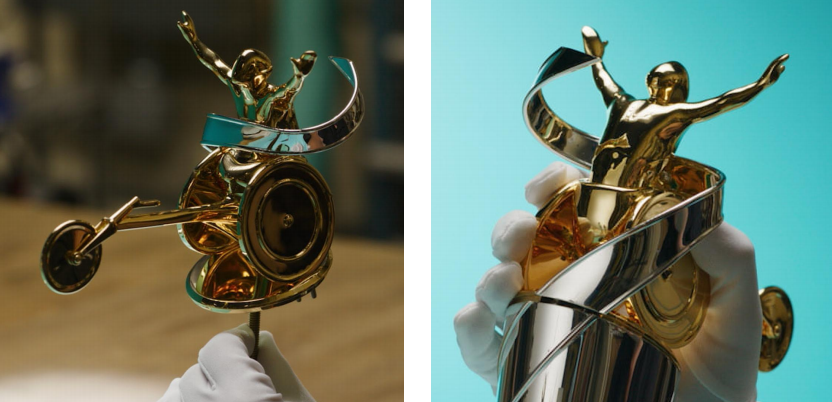 今年,蒂芙尼特别为上海马拉松竞速轮椅组全新设计并手工打造奖杯与奖牌。该组别冠军奖杯采用925纯银材质,饰以24K镀金工艺,呈现竞速轮椅运动员造型,整体高约40.6厘米;亚军奖杯同样以925纯银打造,顶部饰以银质竞速轮椅运动员造型,高约35.6厘米。季军奖杯则点缀青铜材质的竞速轮椅运动员造型。全部六座奖杯均历时逾四个月悉心打造而成。