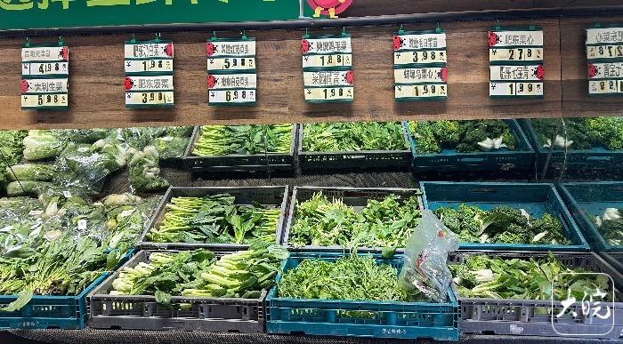 上午9时许,记者来到合肥市龙图路一家连锁生鲜超市。正值市民采购早高峰,蔬菜区聚集了不少正在挑选的顾客。