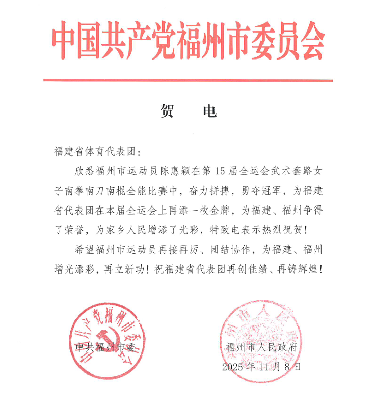 第十五届全国运动会将于2025年11月9日至21日在广东、香港、澳门举行。本届全运会竞体比赛项目共设34个大项419个小项,部分项目在开幕前开赛或完赛。福州健儿陈惠颖、高浩楠出战11月...