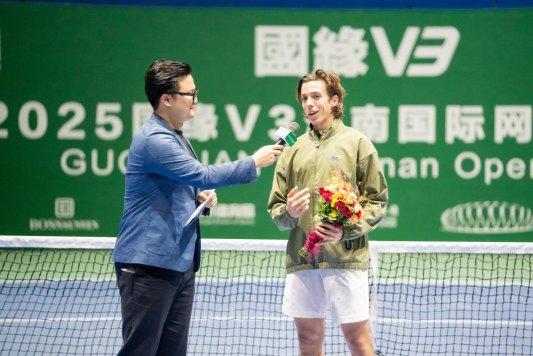 10月12日,2025国缘V3济南国际网球公开赛男单决赛在济南奥体中心网球场圆满收官。这场焦点之战汇聚两大实力选手——头号种子卡佐与美国名将麦克唐纳,最终卡佐凭借稳定发挥,以6-3/6...