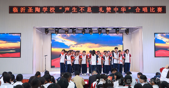 鲁网10月9日讯近日,临沂圣陶高级中学举行“声生不息,礼赞中华”主题合唱比赛。比赛在庄严的国歌声中拉开帷幕,全场肃立。本次比赛非毕业年级全体学生,以班级为单位参赛。各班级在班主任和各老...