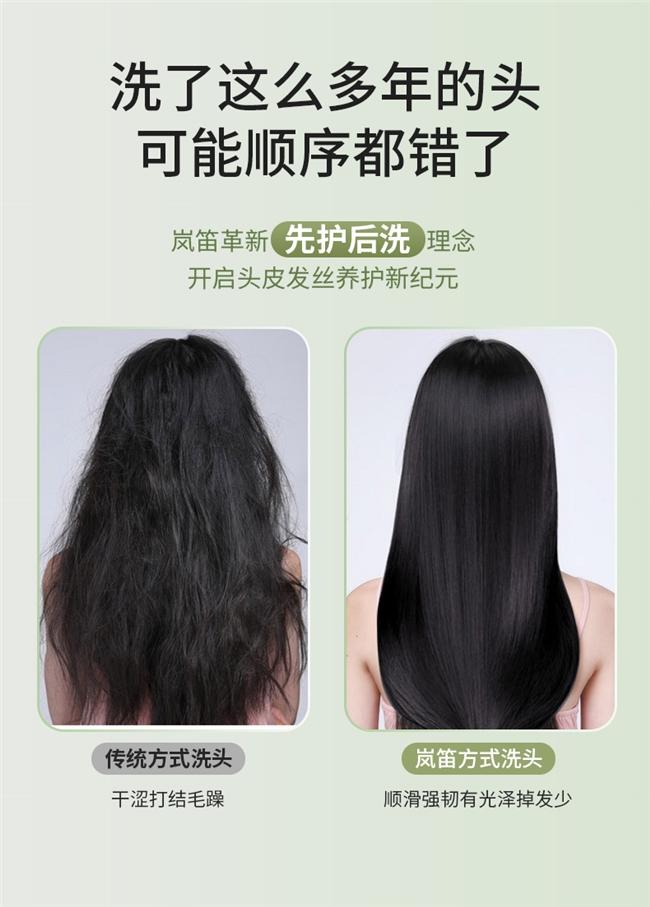 岚笛基于皮肤科学与头皮结构学,提出「先护后洗」的革新理念。这并非简单的步骤调换,而是一次对头皮生态的深度关怀。我们相信,清洁不应以损伤为代价。在洗发前,先用发膜预先滋养、柔顺并修复发丝,形成保护层,使后续清洁能温和地带走污垢,而非剥夺健康油脂。这样洗出的秀发,强韧不易断,头皮得以自由呼吸,重现丰盈蓬松。
