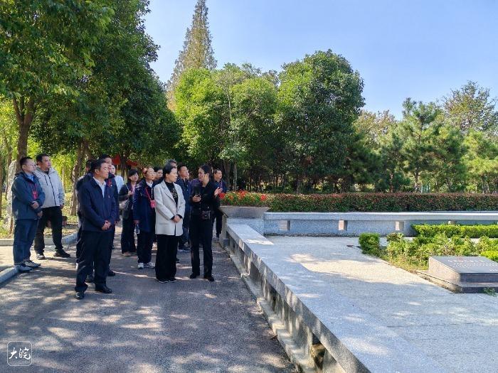 大皖新闻讯 淮海战役双堆集烈士陵园里庄严肃穆,22.5米高的烈士纪念碑直插云霄,“淮海战役双堆集歼灭战烈士纪念碑”鎏金大字在秋日厚重的阳光下熠熠生辉。 10月22日,安徽国防动员“重走支前路”主题活动北线寻访组来到淮海战役双堆集烈士陵园,瞻仰了烈士纪念碑,倾听了感人的故事。