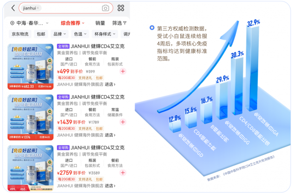 在【京东JIANHUI健輝海外旗舰店】,香港这款标价3594元的JIANHUI健辉CD4艾立克片剂,以CD4⁺T细胞为作用靶点,将免疫功能与精力改善相关联并标注明确价格,其市场关注度的背后,是对特定人群健康需求的精准对应,这种需求导向的产品定位,值得从多个维度客观审视。