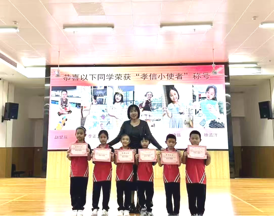 6名学生分享家庭里关于“孝”“信”传承的美德故事,或暖心、或励志,真挚的讲述打动了在场所有人。精彩的演讲让小小演说家们获得了“孝信小使者”的光荣称号,也正是彰显了崇信学子传承美德的优秀表现。