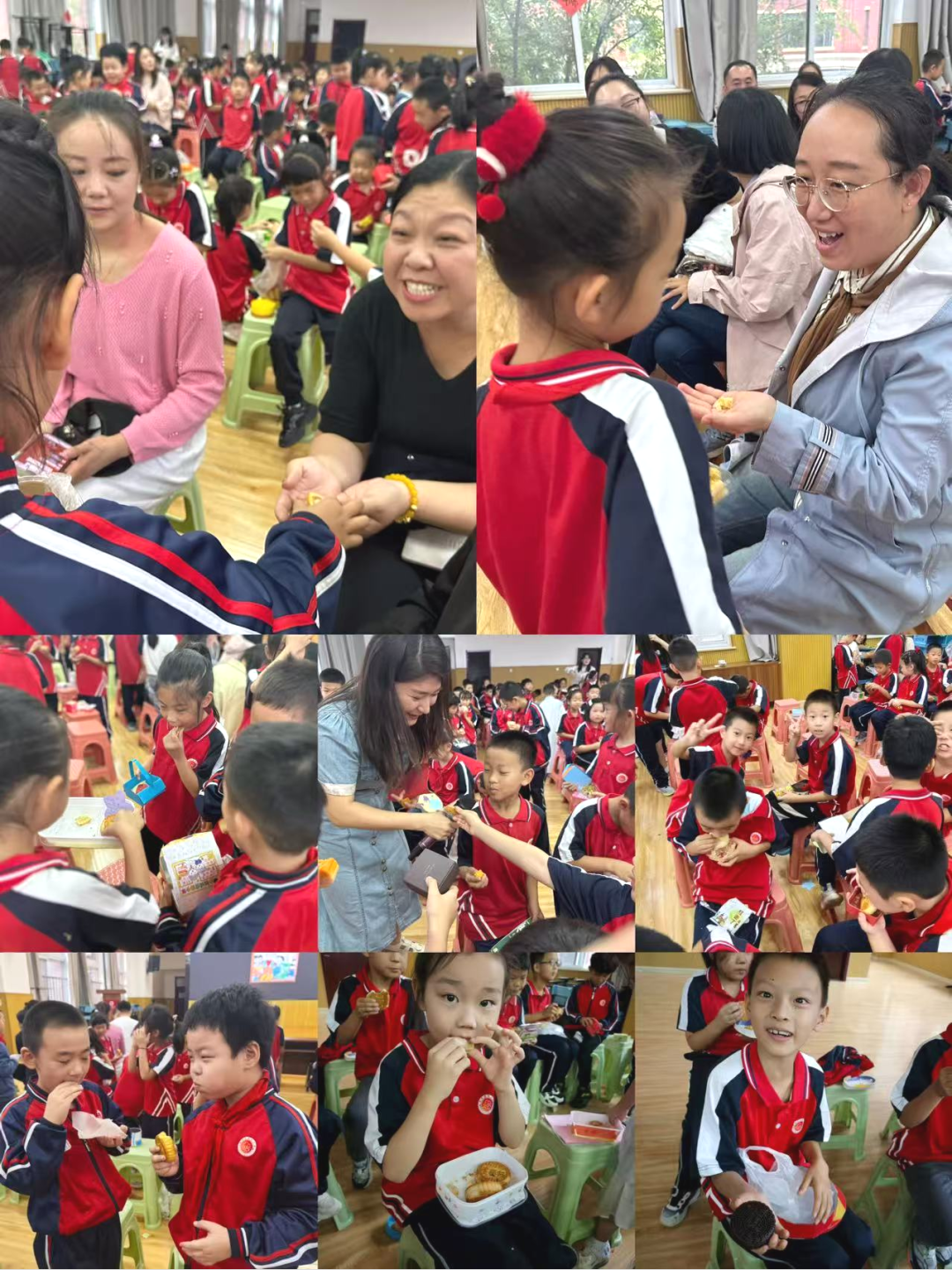最后,孩子们取出餐盒里的手工月饼,与邻座同学、家长、老师分享,讲述制作时的趣事,小小的手工“月饼”里,满是创意与心意。