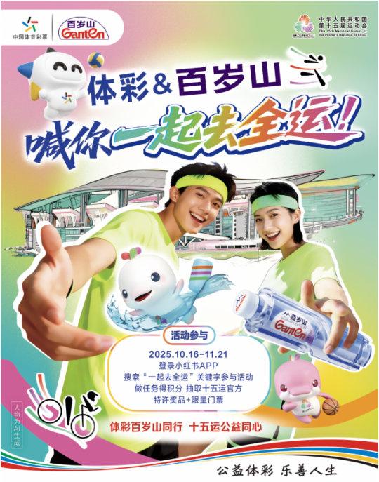 2025 年第十五届全国运动会、全国第十二届残运会暨第九届特奥会开幕在即,作为赛事官方指定饮用水的百岁山,迎来品牌与体育公益深度绑定的重要里程碑 —— 携手中国体育彩票,开启其首次商业化合作,联合发起 “一起去全运” 公益活动,以专属公益彩票献礼体育盛事,为国家体育事业与公益事业双向赋能。