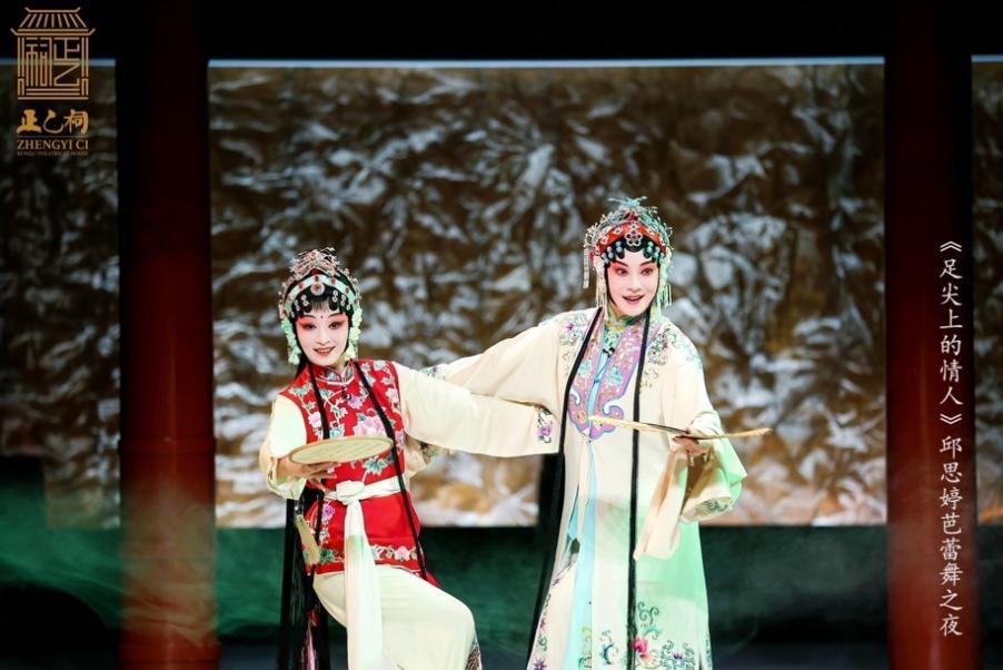 演出伊始,在“引路人”邱思婷的琴声与古戏楼的锣声中拉开帷幕,北方昆曲剧院演员刘亚琳、丁珂带来《牡丹亭·游园》选段,婉转的水磨腔勾勒出杜丽娘的“旖旎春愁”,为演出奠定东方美学基调。随后,邱思婷以芭蕾身姿演绎“入梦的杜丽娘”,与昆曲小生李豪合作《牡丹亭·惊梦》双人舞——足尖轻跃间复刻“梦中情缘”的缠绵,将芭蕾的轻盈与昆曲的柔美身段相融,让经典唱词在足尖跳跃中焕发新生。戏楼的木质台板承载着昆曲的六百年古韵,也托举起芭蕾的轻盈,形成奇妙的视听叠印。