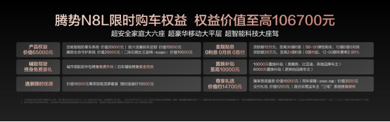 腾势总经理李慧用三句话总结N8L,就是:超安全家庭大六座、超豪华移动大平层、超智能科技大座驾,以硬核技术实力重塑家庭大六座豪华SUV新标准,与每个热爱生活的家庭一起奔赴美好。
