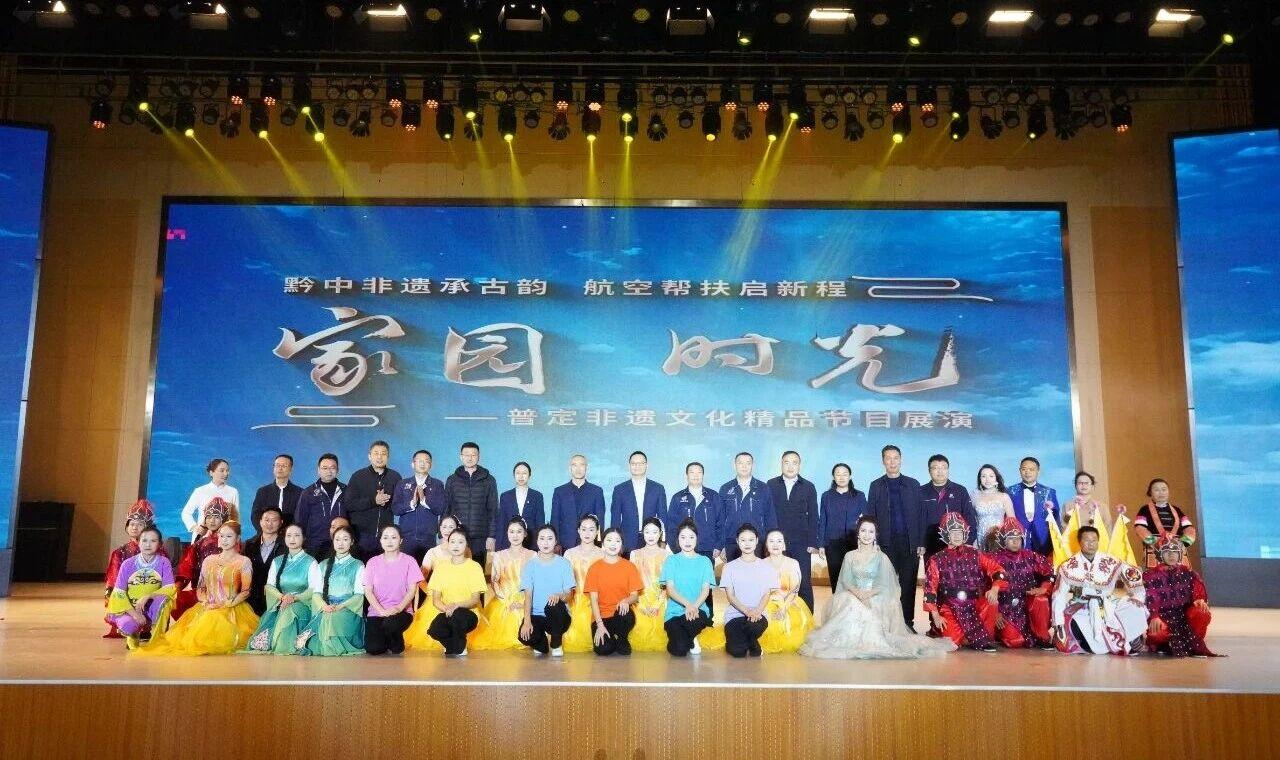 本次展演以“民族魂”“屯堡韵”“振兴路”三个篇章铺展叙事,将多项非遗瑰宝串联成卷。既有“戏剧活化石”安顺地戏、布依铜鼓十二调等国家级非遗的精彩亮相,也有屯堡花灯、苗族阿江、苗族蜡染、刺绣等省级非遗的灵动呈现,多种文化形态的展演包含了历史舞台剧辽远的意境,彰显了人民深厚的历史主动精神,同时生动地展现了这片古老的土地在中国航空工业集团的倾情帮扶下焕发的生机与活力。
