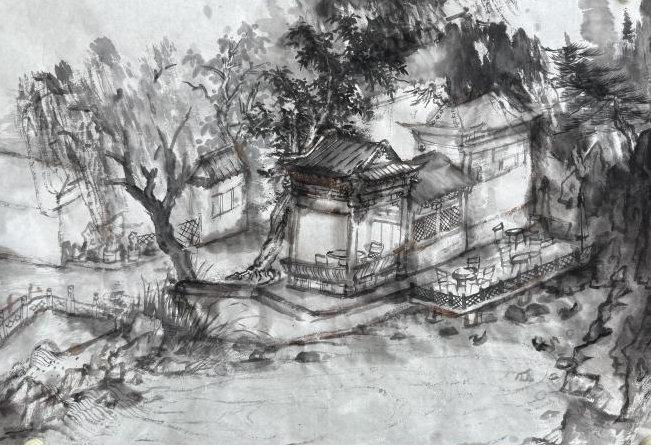 在具体笔墨技法上,周书杨秉持 “写生以生为主” 的原则。描绘建筑时,他会特意弱化线条的实感,让画面更显空灵;对于部分建筑结构,还会进行主观变形,他强调,勾勒房屋轮廓时,绝不会让线条严丝合缝,而是有意留下 “呼吸空间”,让建筑在笔墨间更具生命力。