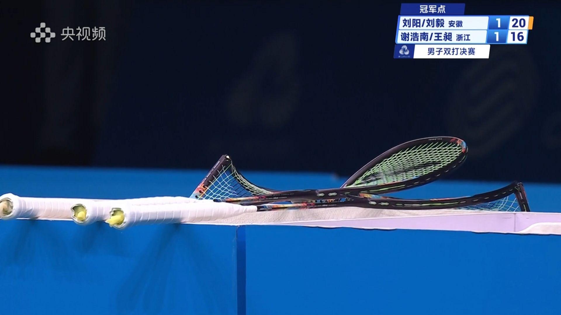 决胜局,网前抢得快敢压扑成了关键点,从6:3到9:4,浙江组合的稳定性凸显,而安徽组合体能下降明显,刘阳一个发球失误将决胜局带入6:11的技术间歇。不得不说,决赛对手确实是刘阳/刘毅一路走来的最强劲敌,场下安徽队教练大喊:大胆一点!两位队员也互相鼓劲:“赢了赚了,输了没事。”9:11,11:12,12:13,13平,安徽组合没有放弃!一个连续防守之后的反杀,14:13,安徽组合决胜局反超比分!丢掉包袱的安徽组合,在白热化的决胜局,也率先走到17:14,紧接着,20:16,安徽队拿到冠军点。17:20,王昶发球,下网,安徽夺冠!