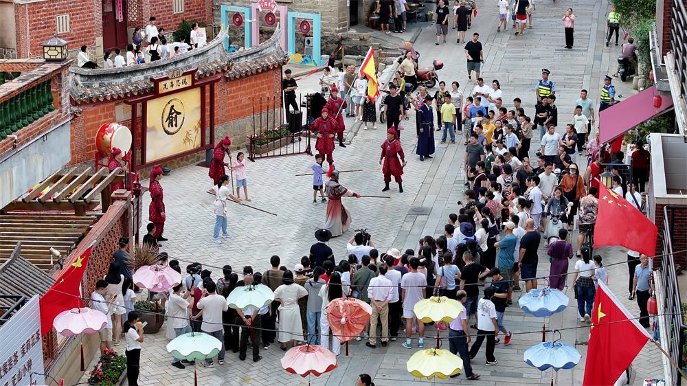 “我们从泉港过来,听说洛江国庆期间有不少特色活动,就趁着假期来看看。今天这场表演形式特别新颖,孩子还参与了‘俞家军兵器体验’环节,学习了俞家棍棍法,真是收获满满。”游客刘女士说道。