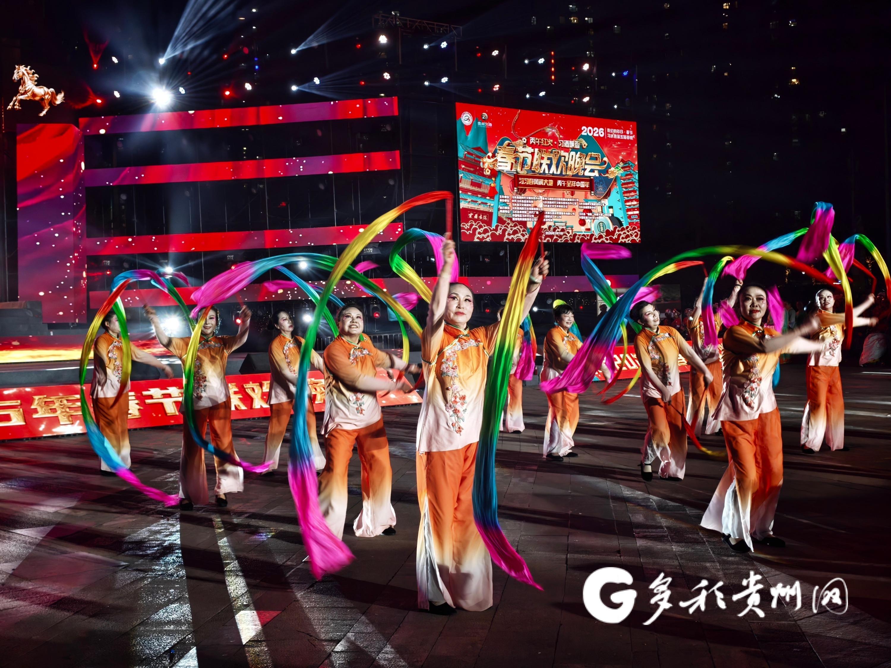 多彩贵州网讯 2月11日晚,习水县城被歌声与欢笑点亮。时代广场上,2026年“丙午红火·习酒飘香”春节联欢晚会热热闹闹地开了场。晚会以“习习春风润大地·丙午呈祥中国年”为主题,汇聚歌舞...