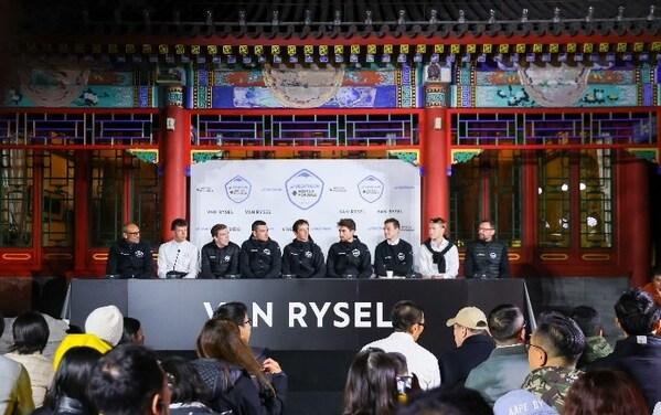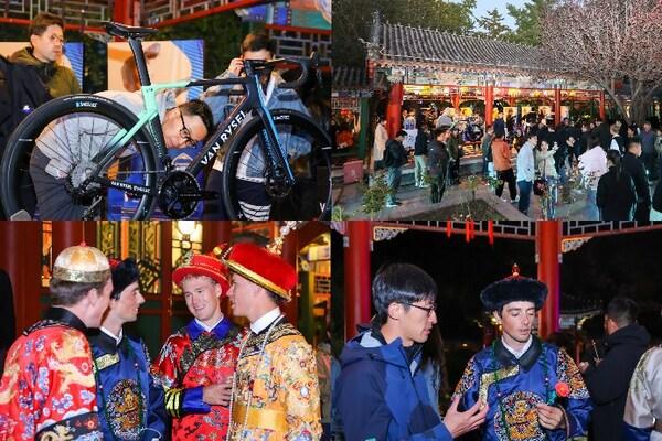 现场,迪卡侬旗下专业公路自行车品牌VAN RYSEL为车队打造的系列参赛装备集中亮相,吸引众多媒体与车迷驻足关注。活动环节巧妙融入京剧表演、糖画等传统文化元素,车队选手亦身着中国传统服饰与观众亲切互动。雕梁画栋的庭院中,百年古韵与现代竞技交织,营造出独具一格的中西文化交流场景。
