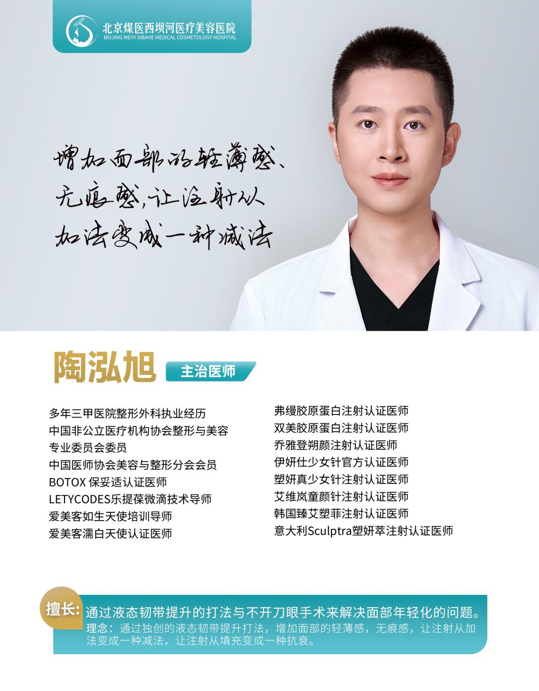 陶泓旭主任,北京煤医微整科主任,拥有丰富的临床经验和精湛的注射技术。他深知求美者对于丰唇的担忧,多年来不断钻研,致力于让每一位求美者都能在无痛、不肿的情况下拥有理想的唇形。