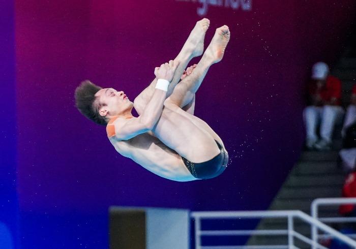 大皖新闻讯 第十五届全国运动会跳水项目男子10米跳台决赛11日晚在广东奥林匹克体育中心举行,这是本届全运会跳水项目的收官之战。四块奥运金牌获得者、北京队10米台王者曹缘坐镇,另一位奥运冠军练俊杰关键时刻跳出全场最高分,以3.5分优势惊险夺冠。赵俊杰获得第三名。