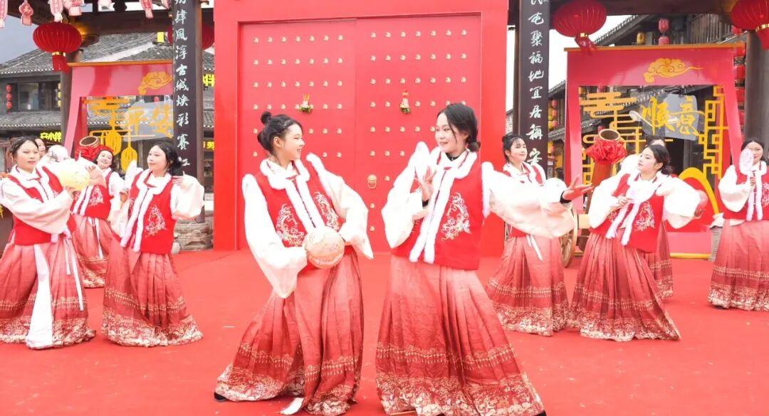 10时18分整,开财门仪式在热烈的倒计时声中正式启幕。舞蹈《斜塘市井》率先登场,灵动的舞步和欢快的节奏瞬间点燃了现场的气氛。