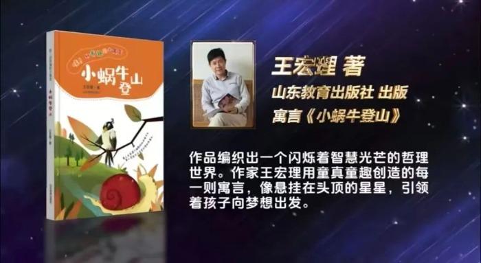 《小蜗牛登山》是王宏理给孩子创作的寓言故事集,正如颁奖词所说:“作品编织出一个闪烁着智慧光芒的哲理世界。作家王宏理用童真童趣创造的每一则寓言,像悬挂在头顶的星星,引领着孩子向梦想出发。”