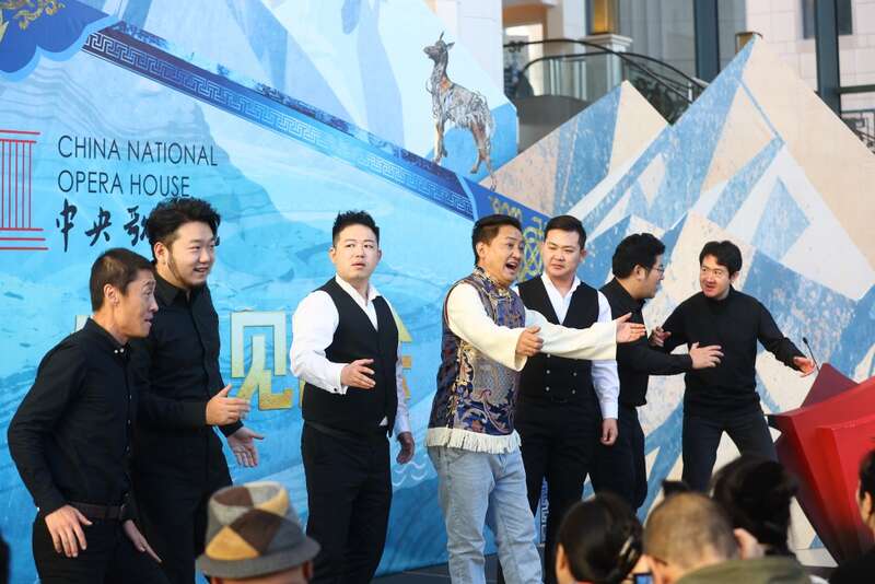 青海省演艺集团声乐演员嘉萨登增(左四)与中央歌剧院演员共同表演歌剧《可可西里》中的重唱片段。中央歌剧院供图