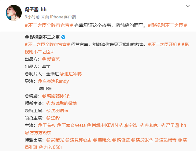 青春正好,未来可期。让我们一起期待冯子涵在《不二之臣》中的精彩亮相,并共同见证这位宝藏女孩的无限潜能与闪耀未来!责任编辑:韩璐(EN053)