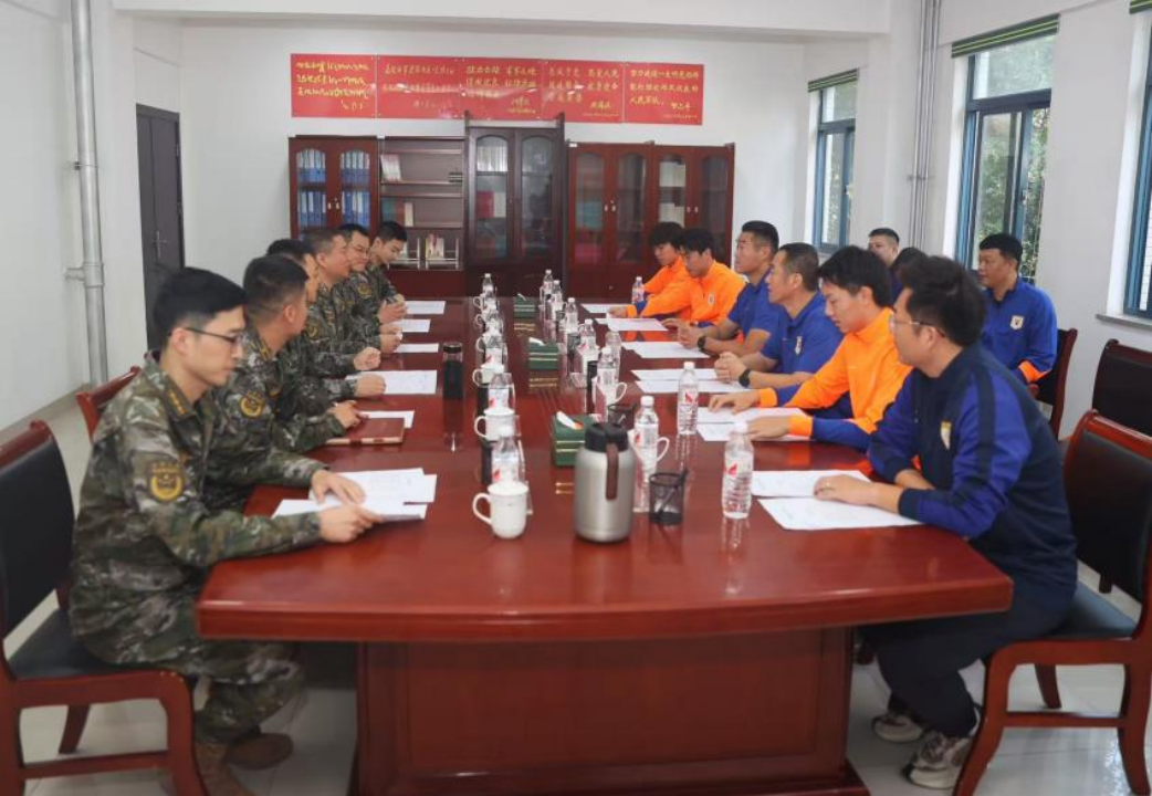 活动伊始,武警山东总队与济南支队官兵代表在楼前热情迎接山东泰山足球俱乐部一行。在会议室的座谈环节,双方领导围绕传承抗战精神、深化军民共建展开深入交流。