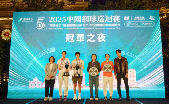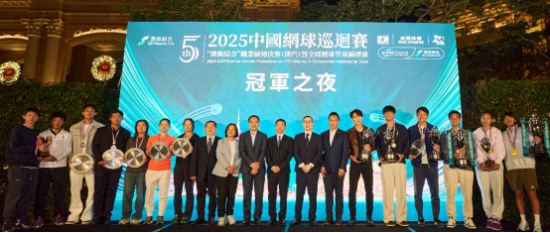 12月7日晚,2025 中国网球巡回赛「澳娱综合」职业级总决赛(澳门)暨全国网球单项锦标赛冠军之夜于澳门上葡京综合度假村举行。