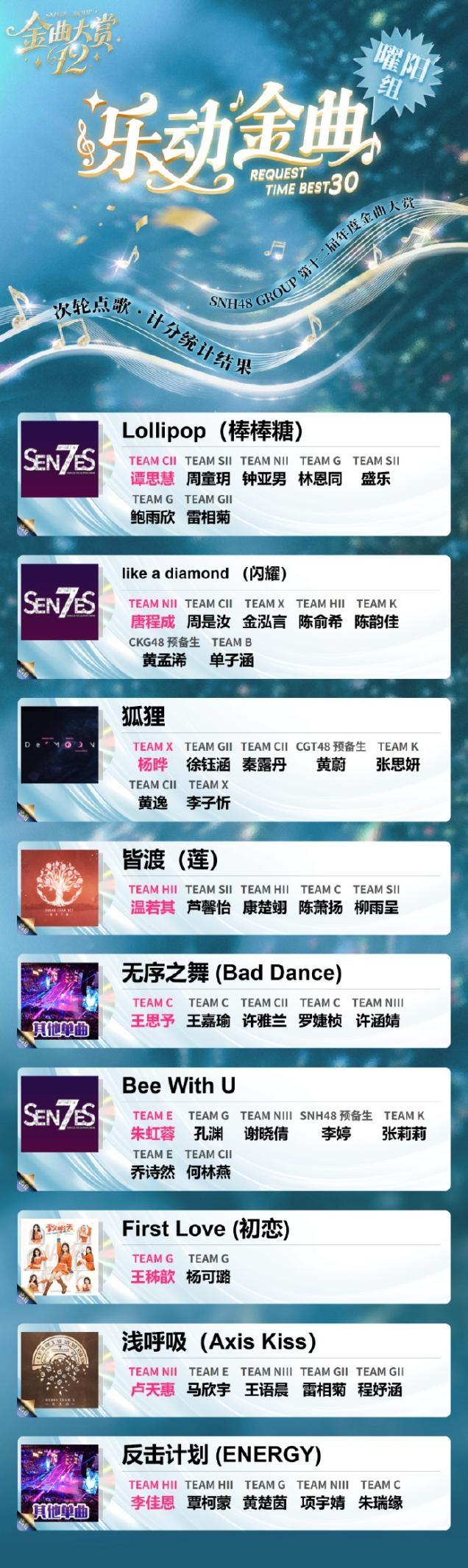 随着SNH48第十二届金曲中报的发布,金曲速报的竞争格局迎来“翻天覆地”式变革。本届中报以皓月组、曜阳组、热歌组次轮歌单及金曲主理人次轮提名四大板块为核心,全方位展现了成员与粉丝的双向奔赴,以及金曲音乐盛宴的激烈竞争与无限活力。