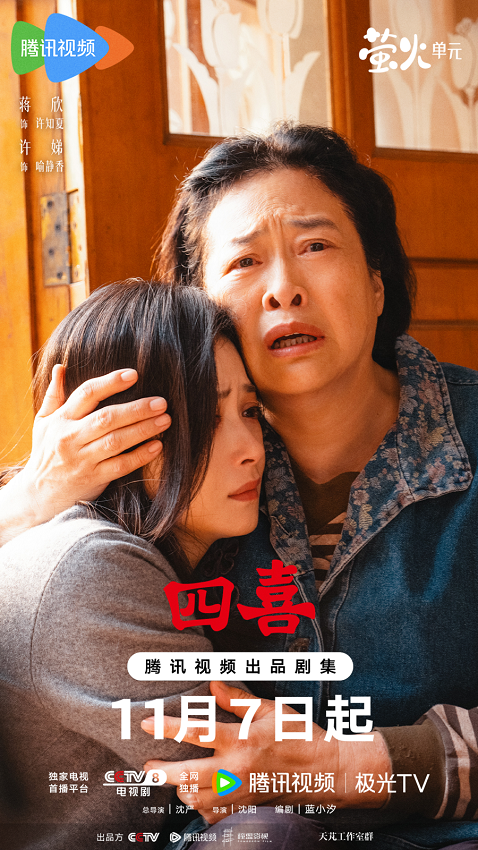 立冬已至,暖剧先行。今晚起,由中央电视台、腾讯视频、瞳盟影视出品,由沈严总导演,沈阳导演,蓝小汐编剧的现实主义生活情感群像剧《四喜》,正式登陆CCTV-8黄金强档,并在腾讯视频全网独播。该剧改编自火星女频清扬婉兮小说《有喜》,童瑶、蒋欣、黄明昊领衔主演,许娣、林晓杰、侯岩松、岳红特邀主演,付辛博、王菊、黄澄澄、宣言、马旭东特别出演,以“三妈争女”为主线,勾勒出一幅生动鲜活的当代家庭生活长卷。