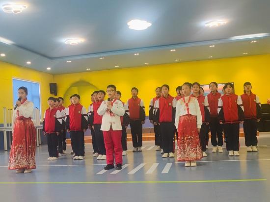比赛现场,五年级的同学们以集体朗诵的形式登场:有的班级身着整洁的校服,齐诵《黄河颂》,“望黄河滚滚,奔向东南”的词句里,藏着对母亲河的眷恋;有的班级搭配手势与节奏,将《少年中国说》里“少年智则国智,少年强则国强”的呐喊演绎得朝气蓬勃;还有的班级尾声处全员合诵,伴随握拳、展臂的舞蹈动作,让气势层层攀升,将全场氛围推向高潮。