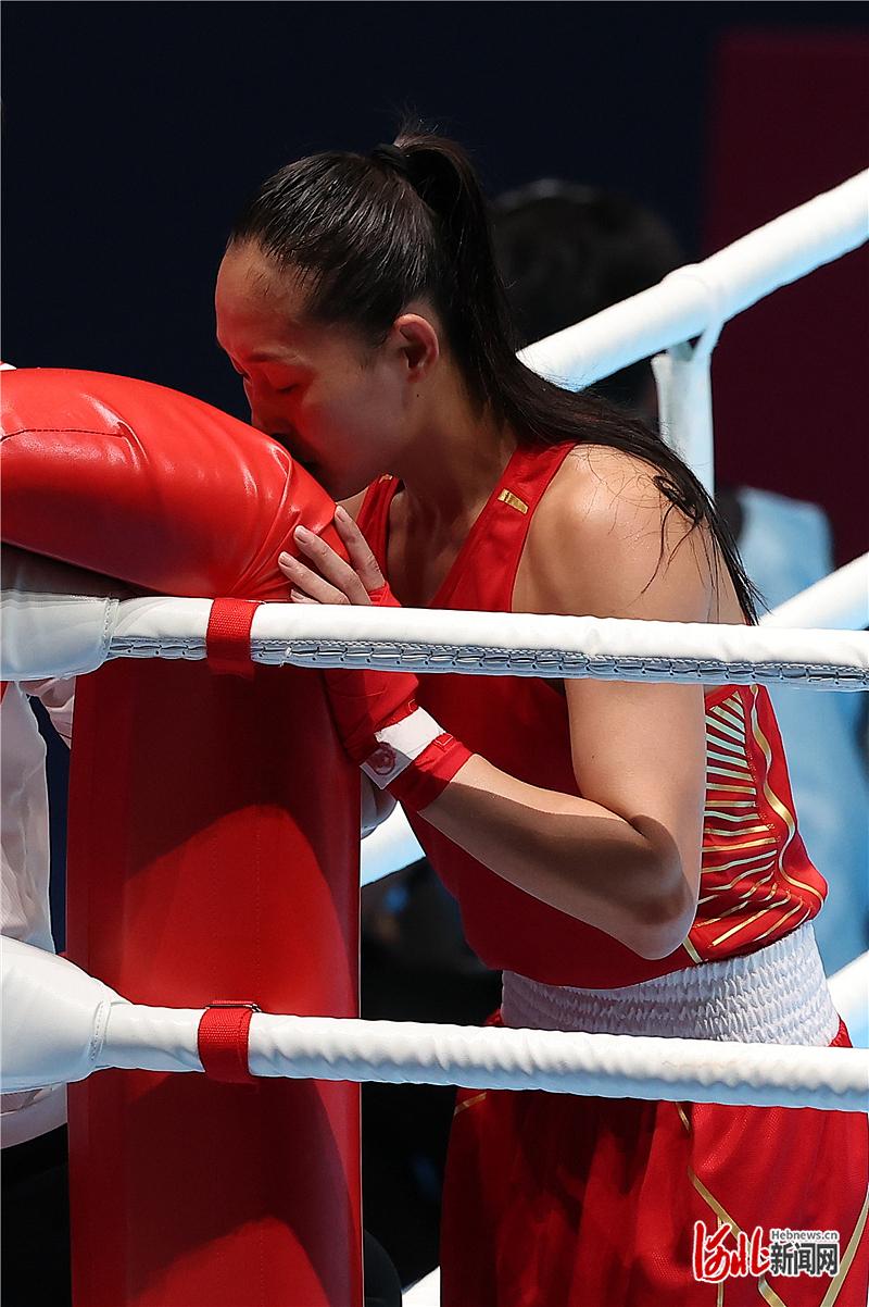 11月14日,赛后河北运动员常园亲吻拳击台。