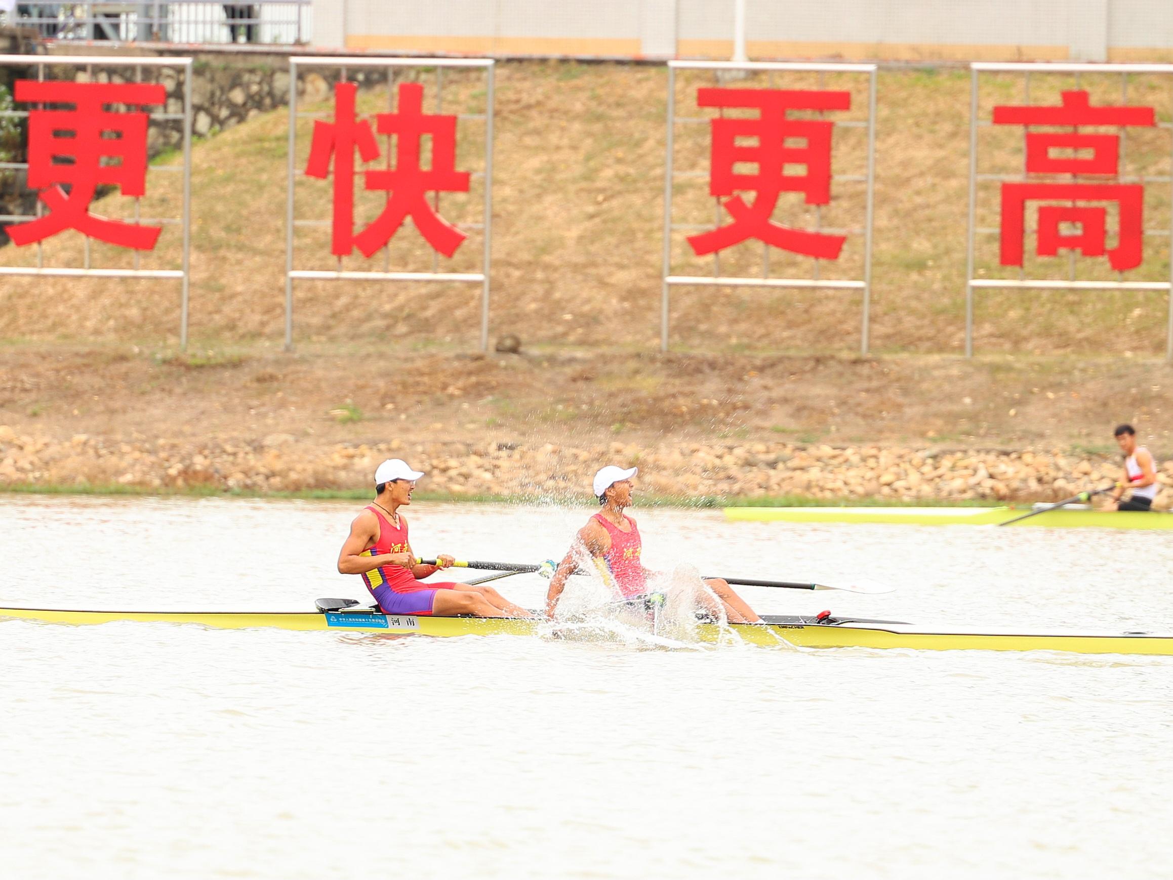 大河网讯11月11日上午,第十五届全运会竞技体育赛艇男子双人单浆决赛在广州举行。河南省运动员崔兵辉、边世豪夺得金牌,这是河南运动员在本届大湾区全运会竞技体育项目中获得的第二枚金牌,也是赛艇项目的第二枚金牌。(莫韶华/文 胡斌/图)