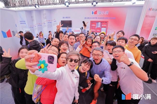 当天上午,马博会度小满展位前早早聚满了人:穿西马参赛服的跑者们、关注许飞动态的歌迷以及带着孩子们逛展的西安市民都被度小满展位的热闹吸引。待主持人开场后,许飞伴随着大家的掌声登台互动。