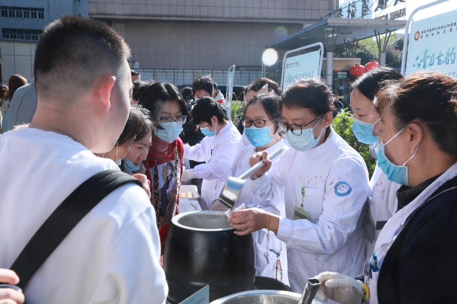 那么,霜降时节吃点什么更健康、更养生?在义诊现场药膳品鉴区,医院推出了根据霜降节气特点特制的桂花板栗饼、山药栗子羹、石斛老鸭汤等养生药膳供市民免费品尝。“板栗是秋季应季食材,能补肾、健脾益气,制成的板栗桂花糕可以调理脾胃,为过冬做准备;石斛能益胃生津,搭配鸭肉可滋阴润燥,适合秋冬口干舌燥的人吃。”