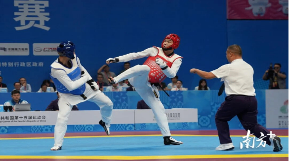在十五运会跆拳道比赛中广东健儿共摘得2金1铜,生动诠释了“敢于拼、善于战、勇于胜”的广东体育军团精神,好样的!