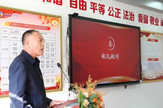 徐广平副书记在“领导致辞”环节发表讲话。他深情回顾了五位老师与临沂八中共同成长的点点滴滴,衷心感谢他们多年来在教育岗位上的默默耕耘,感恩这份跨越时光的深厚教育情怀,并代表全校师生向五位荣退教师送上最诚挚的祝福。
