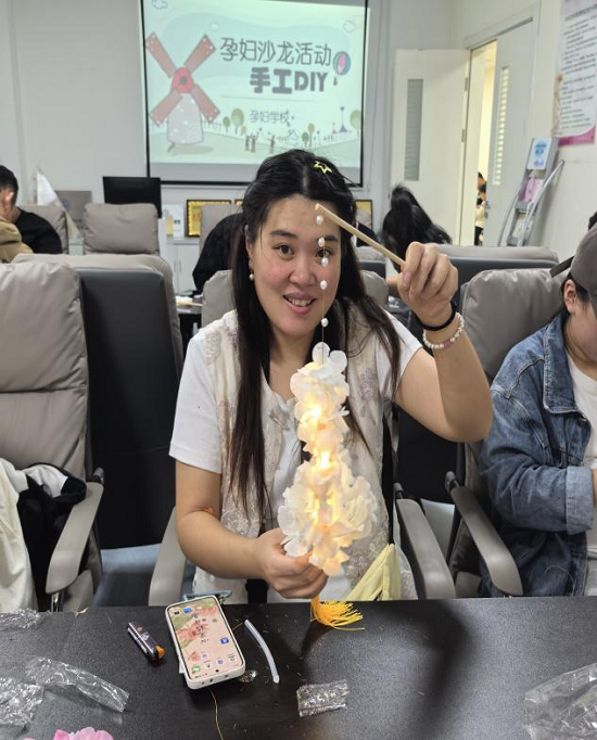 不一会儿,一盏盏独具巧思、饱含爱意的中秋灯笼陆续完成。活泼可爱的小玉兔灯、典雅的传统宫灯、写满祝福的创意花灯……灯光点亮时,柔和光芒映照在孕妈妈们幸福的脸上,也仿佛照亮了新生命即将到来的希望之路。大家互相欣赏作品,分享孕期心得,孕妇学校内笑语盈盈,暖意融融。