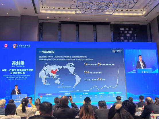 行业分析指出,中国的汽车产业全球化已经从整车出口转向零部件、技术标准、竞争服务全产业链协同出海。一汽集团海外事业部海外战略与运营总监高剑雄在会上介绍,一汽集团现已形成覆盖102个国家的市场网络,在非洲、欧洲、中东布局12家子公司,并与“一带一路”沿线国家共建25座合作工厂。未来,依托中国新能源汽车产业链成本与技术竞争力,一汽加速向“技术标准+生态服务”转型。